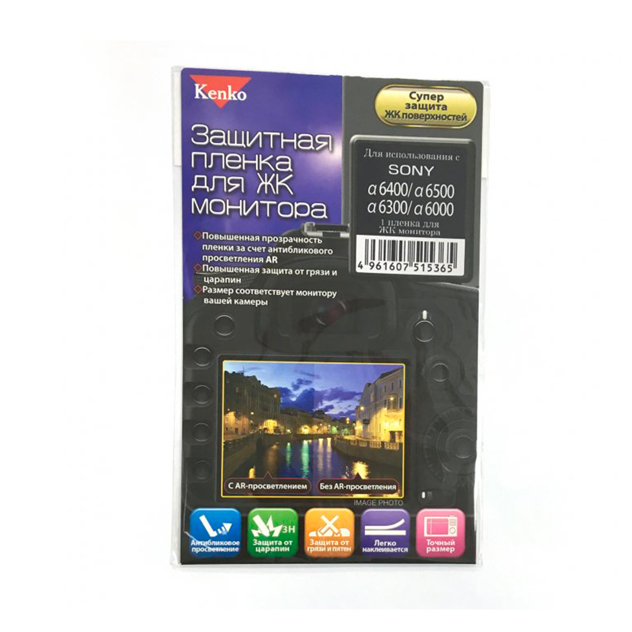 Защитная пленка Kenko имеет отличную светопропускную способность, за счет которой значительно уменьшаются блики и отражения, изменяющие фотографии, сделанные цифровой камерой. Так же она защищает ЖК-дисплей камеры от грязи, царапин и жировых отпечатков. Механизм наклейки пленки прост и удобен, её без труда можно наклеить на поверхность дисплея. Защитная пленка Kenko для ЖК-дисплея с антибликовым просветлением AR. Представляет собой базовый слой с нанесенным на его поверхность твердым образующим слоем с многослойным диэлектрическим просветлением. Твердый слой имеет показатель твердости 3H. Благодаря многослойному диэлектрическому просветлению два вида отраженных световых волн перекрывают друг друга, снижая при этом бликование на внешней поверхности пленки и в то же время пропуская выходящий свет с обратной стороны. Если смотреть на дисплей, защищенный пленкой Kenko, то отражения внешних предметов практически не видно, при этом изображение не теряет яркости и четкости. Разница двух видов просветления в том, что сухое просветление имеет более высокие показатели светопропускания. В производстве защитных пленок применяются 2 вида просветления: мокрое и сухое. Защитная пленка Kenko использует сухое просветление, тогда как другие японские производители используют мокрое. Сухое просветление представляет собой слой из микрочастиц железа, нанесенных на поверхность пленки. Мокрое просветление представляет собой напыление веществ, растворенных в особой жидкости. Структура просветления защитной пленки Kenko включает 4 слоя: 1 твердый образующий слой + 2 слоя из микрочастиц железа + 1 грязезащитный слой. При этом грязезащитный слой представляет собой автономную структуру.