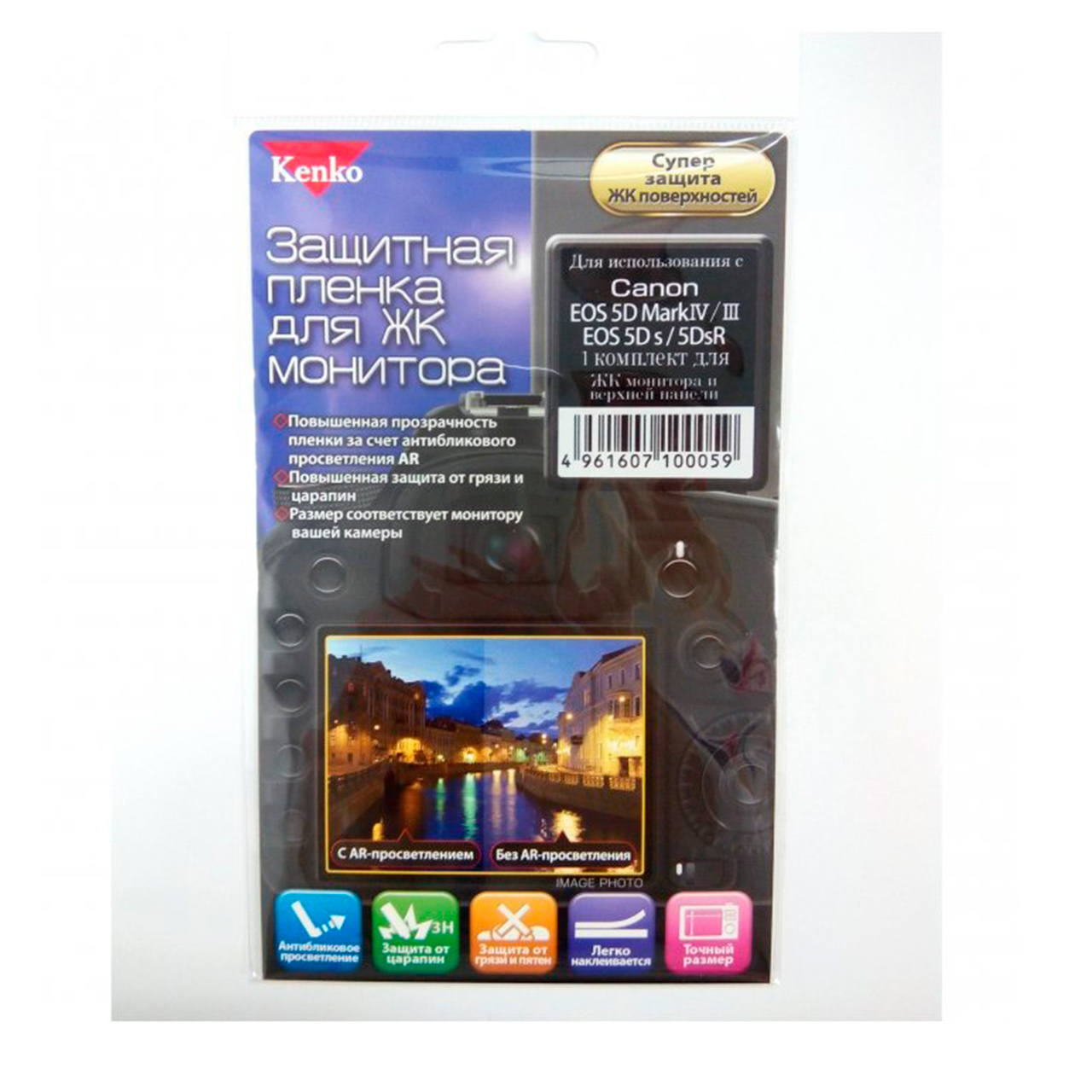 Защитная пленка Kenko имеет отличную светопропускную способность, за счет которой значительно уменьшаются блики и отражения, изменяющие фотографии, сделанные цифровой камерой. Так же она защищает ЖК-дисплей камеры от грязи, царапин и жировых отпечатков. Механизм наклейки пленки прост и удобен, её без труда можно наклеить на поверхность дисплея. Защитная пленка Kenko для ЖК-дисплея с антибликовым просветлением AR. Представляет собой базовый слой с нанесенным на его поверхность твердым образующим слоем с многослойным диэлектрическим просветлением. Твердый слой имеет показатель твердости 3H. Благодаря многослойному диэлектрическому просветлению два вида отраженных световых волн перекрывают друг друга, снижая при этом бликование на внешней поверхности пленки и в то же время пропуская выходящий свет с обратной стороны. Если смотреть на дисплей, защищенный пленкой Kenko, то отражения внешних предметов практически не видно, при этом изображение не теряет яркости и четкости. Разница двух видов просветления в том, что сухое просветление имеет более высокие показатели светопропускания. В производстве защитных пленок применяются 2 вида просветления: мокрое и сухое. Защитная пленка Kenko использует сухое просветление, тогда как другие японские производители используют мокрое. Сухое просветление представляет собой слой из микрочастиц железа, нанесенных на поверхность пленки. Мокрое просветление представляет собой напыление веществ, растворенных в особой жидкости.