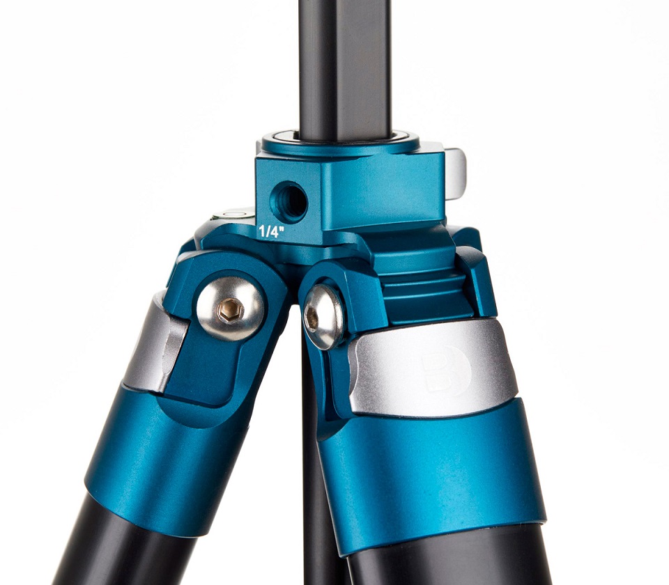 Benro TCBA15FS20PROC Cyanbird – компактный алюминиевый штатив. Широкий диапазон регулировки высоты позволяет комфортно снимать в полный рост и проводить съемку с уровня земли. Центральная колонна состоит из двух секций: верхняя часть короткая, ее можно снять и использовать отдельно для макросъемки или съемки с уровня земли. На короткой колонне предусмотрены три резьбы 1/4" для установки дополнительного оборудования (свет, микрофон, монитор и т.п.). Еще 2 таких резьбы и пузырьковый уровень установлены на крестовине штатива. Колонна быстро фиксируется металлическим зажимом-клипсой. Внизу у колонны предусмотрен крючок для подвески груза для повышения устойчивости штатива в условиях сильного ветра. Шестигранный ключ для регулировки штатива встроен в крючок и располагается внутри колонны.