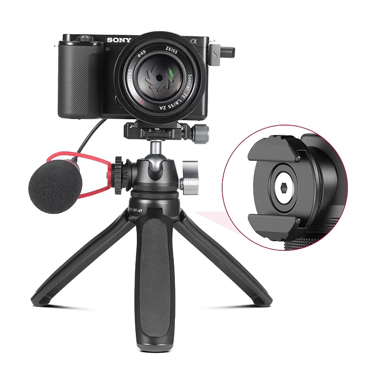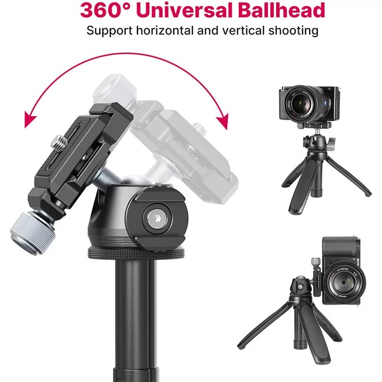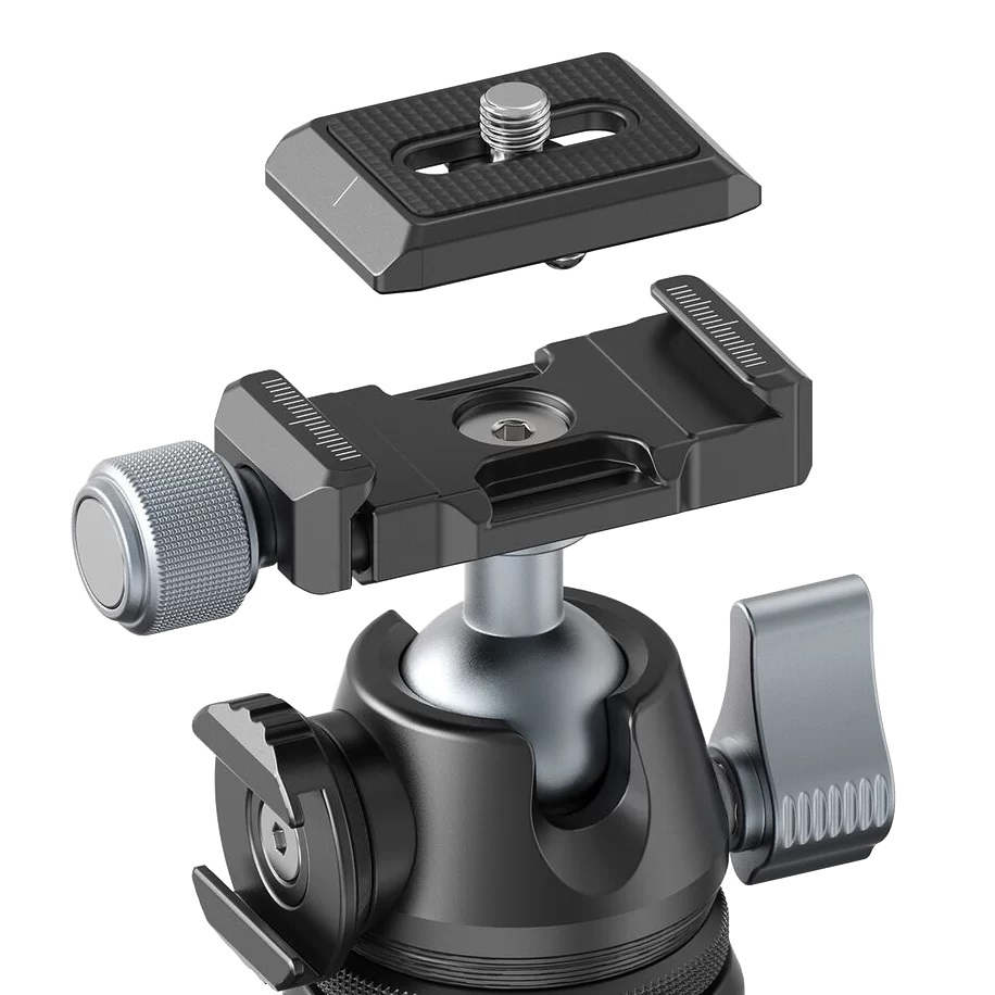 Штатив с быстросъемной площадкой Arca Swis. Металлическая конструкция выдерживает нагрузку до 2 кг, а на холодный башмак сбоку можно закрепить осветитель, микрофон или иное оснащение. Штативная голова оснащена быстросъёмной площадкой типа Arca Swiss, что позволяет быстро переключаться между соответствующими креплениями. Телескопическая центральная колонна позволит увеличить общую длину до 372 мм. Сложив ножки вы получите прекрасный функциональный монопод.