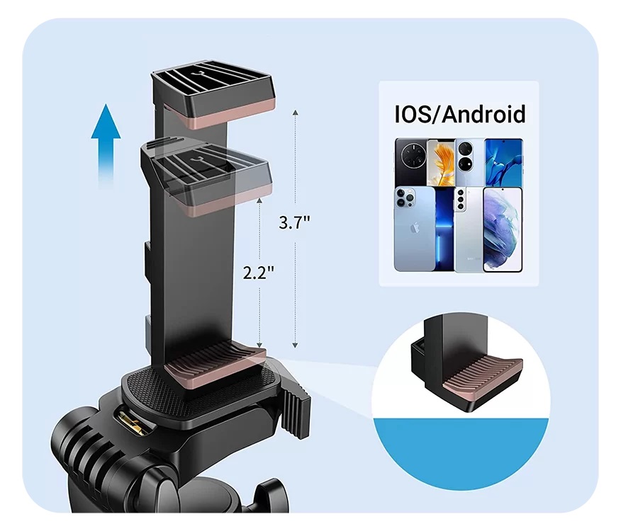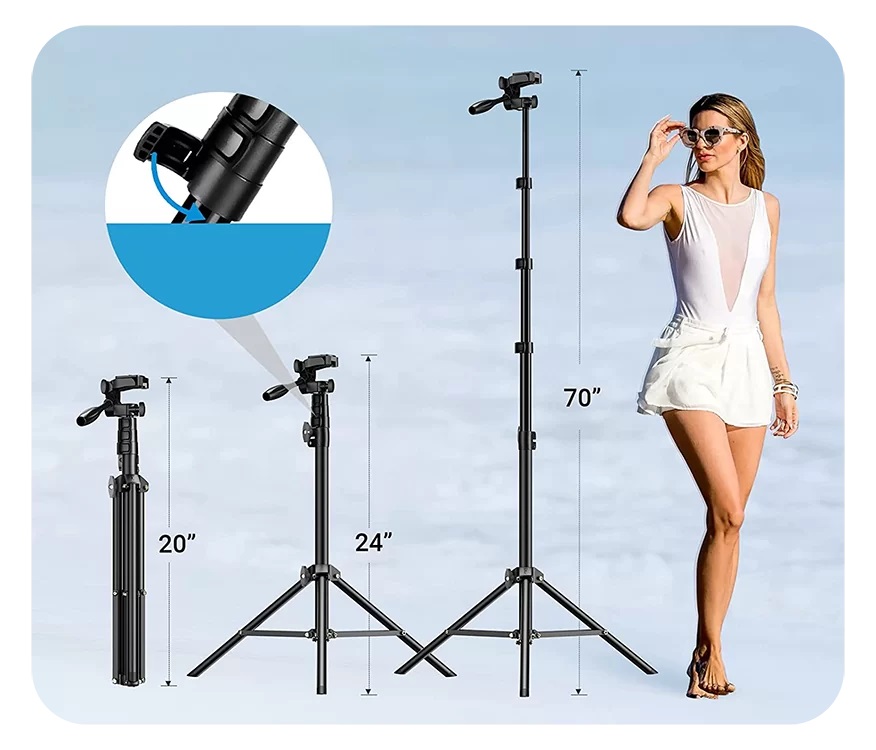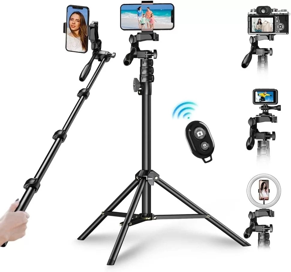 Комплект оснащен пультом дистанционного управления, который позволяет снимать фото и видео на расстоянии до 10 метров. Устройство совместимо с мобильными устройствами iPhone и Android, GoPro, камерой и даже кольцевым фонариком, что делает его идеальным решением для селфи, для прямых трансляций и ведения блога, а также для профессиональной съемки в студии или на природе.
