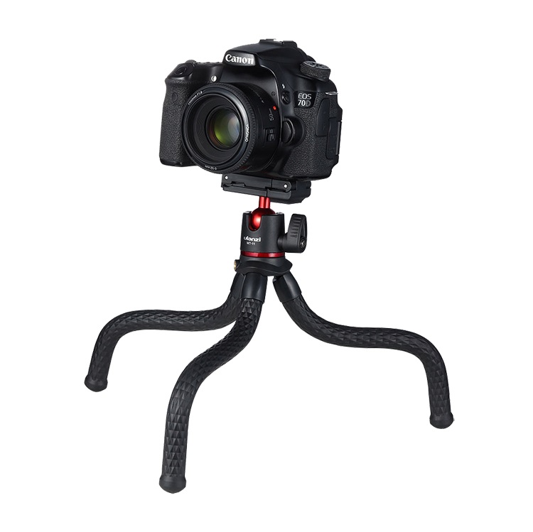 Функциональный штатив для фиксации камер весом до 2 кг и смартфонов. Ключевой особенность является площадка с креплением 1/4", которая превращается в держатель смартфона. Благодаря такой треноге вы сможете установить фотоустройство на различной поверхности и даже на ветке дерева. Она позволит надежно зафиксировать фотокамеру в требуемом положении.