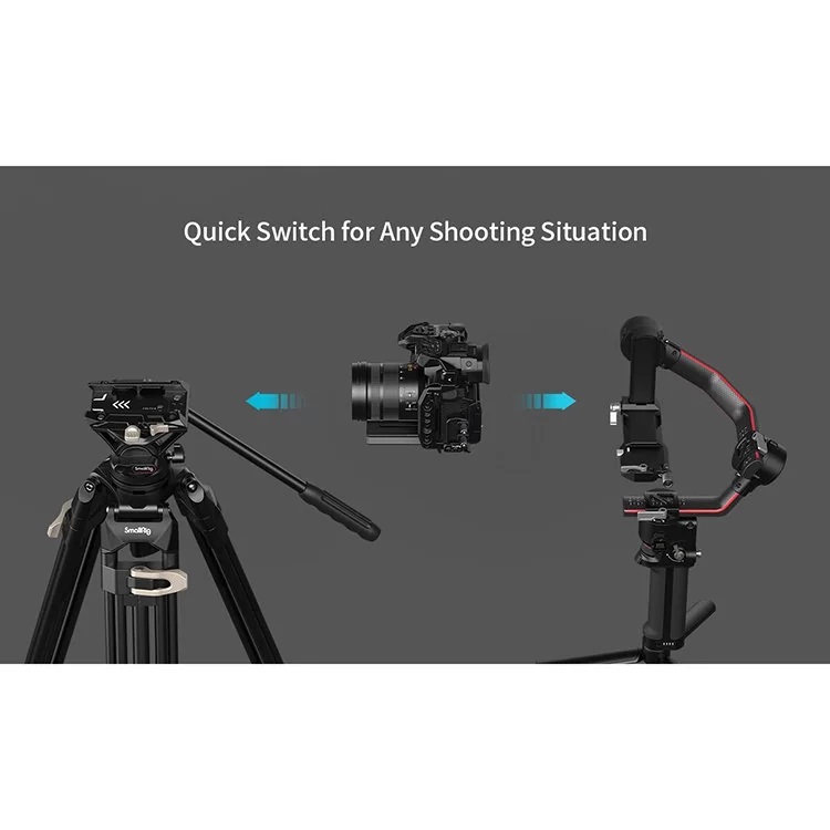 Штативная голова оснащена быстросъёмной площадкой стандарта Manfrotto, а также совместима с площадкой DJI RS 2. Переключение режимов производится на самой голове.