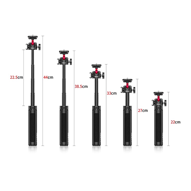 Функциональный MT-16 работает как стабильный держатель для камер в виде штатива и как устройство для съемки селфи, а также панорамы заднего плана. Благодаря резьбовому креплению 1/4" Ulanzi подходит к большинству экшн-камер, легких беззеркальных камер и смартфонов. Конструкция "холодный башмак", которая находится сбоку, позволит вам установить микрофон, свет и другие устройства. Штатив Ulanzi имеет 3 выдвижные ножки. Центральная опорная ножка снабжена противоскользящей резиной. Телескопическая селфи палка имеет эргономичную, нескользящую ручку, которая выдвигается на 4 ступени. Собранная в рабочее состояние конструкция имеет длину 44 см, а в сложенном всего 22 см. В любое время разместите свой набор в нужном месте и творите чудо! Модель MT-16 выполнена из прочного, жесткого ABS-пластикаю Шаровая головка изготовлена из алюминия, благодаря чему способна выдержать оборудование весом до 1.5 кг