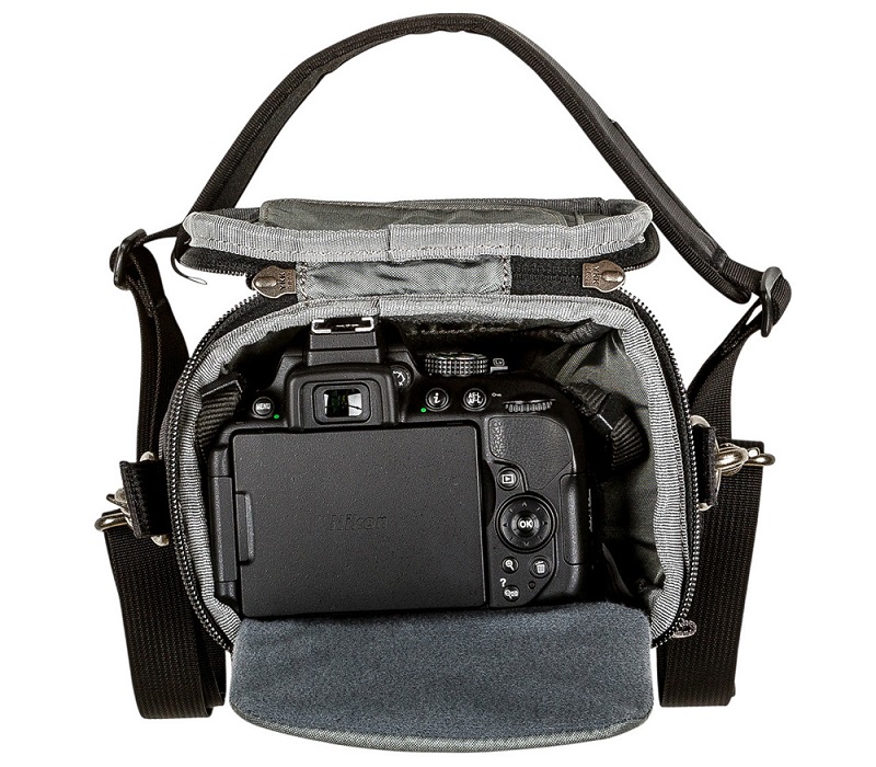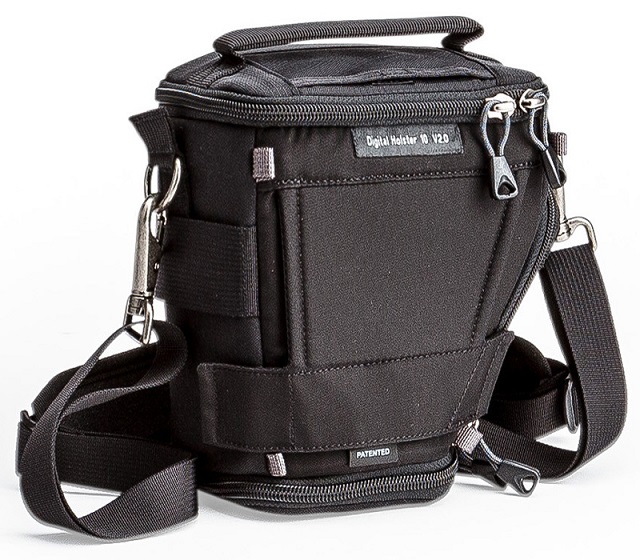 Digital Holster 10 V2.0 - настоящая кобура для вашей фотокамеры. Данная сумка рассчитана на зеркальные камеры начального уровня или большие беззеркальные камеры (Sony A7, Fujifilm X-T) с достаточно небольшими объективами, такими как, например, 18-200/3.5-5.6. Есть возможность увеличить глубину сумки для ношения объектива с блендой в «боевом» положении или для ношения более длинных объективов. Сумка имеет несколько вариантов ношения: на поясном ремне (проушина на липучках позволяет надеть или снять сумку, не снимая ремень), на ремне через плечо или на специальной нагрудной разгрузке Digital Holster Harness (продается отдельно).