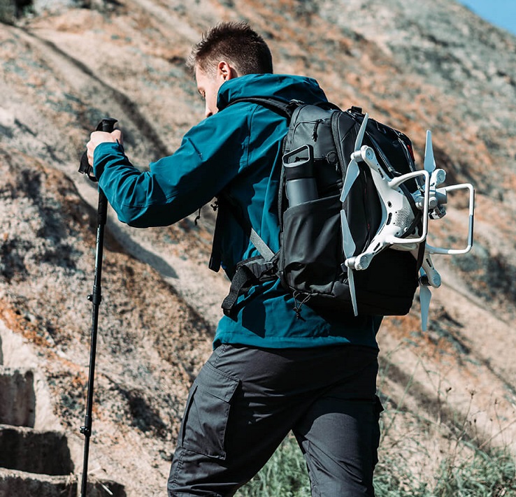 Если вы любите снимать при помощи дронов, то рюкзак Onemo разработан специально для вас. Рюкзак и сумка были созданы дизайнерами для выполнения нескольких функций: объёмный рюкзак на 25 литров позволяет переносить два дронов и 5 линз для съёмок на коротких дистанциях и переносить Ronin SC без отдельного чехла или запасную одежду благодаря возможности увеличить объём рюкзака. Двойная застёжка позволяет быстро достать камеру из верхней части, а из нижней – встроенный чехол для защиты рюкзака от погодных условий. В задней части находится карман с разделителем, который можно использовать при необходимости для создания оптимального варианта переноса техники.