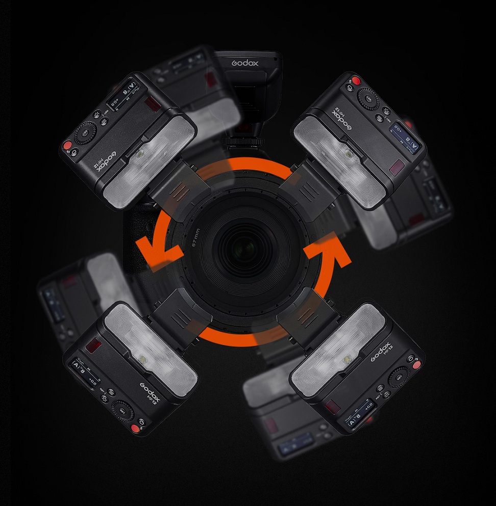 Комплект импульсных осветителей Godox MF12-K2 создан, чтобы обеспечить мягкое ровное освещение в непосредственной близости от объекта и облегчить процесс макросъемки и съемки крупным планом. Съемка растений, мелких животных и насекомых (даже быстро перемещающихся) станет проще и доступнее с MF12. Комплект включает в себя две вспышки Godox MF12, комплект переходных колец Godox AR-R Kit и монтажное кольцо Godox MF-R для установки вспышек на объектив фотоаппарата. Кроме того, дополнительные аксессуары такие, как штатные мини-штативы, адаптеры на башмак, наборы цветных и корректирующих фильтров, кейс для хранения делают использование комплекта еще удобнее и проще. Godox MF12 позволит снимать красивые и четкие фотографии небольших объектов с очень близкого расстояния. Регулируемая головка имеет 10 фиксированных положений для того, чтобы точно направить свет даже с очень близких позиций съемки. MF12 работает в качестве ведомой TTL-вспышки с различными радиосинронизаторами в системе Godox 2.4GHz – Godox XPro, X1, X2 и другими вспышками Godox, совместимыми с беспроводной системой Godox и фотокамерами основных брендов, такими как Nikon, Sony, Canon, Fuji, Olympus и Panasonic. А также в качестве ведомой вспышки в мануальном режиме с оптическим запуском. Вспышки MF12 оптимизированы для макросъемки и съемки сверхкрупных планов благодаря компактному дизайну и нескольким вариантам установки. Маленькие вспышки могут закрепляться на объектив фотоаппарата, устанавливаться на прилагаемые мини-штативы, а также на разнообразные держатели с креплением «башмак» или резьбой 1/4'' (приобретаются дополнительно). Монтажное кольцо, входящее в комплект, позволяет монтировать до шести вспышек MF12 и закреплять их в одном из 24 положений. Монтажное кольцо закрепляется на объектив с помощью одного из переходных колец, наиболее популярных размеров. Кольца Ø49 мм, 52 мм, 55 мм, 58 мм, 62 мм, 67 мм, 72 мм, 77 мм подходят для большинства объективов различных производителей, делая эту вспышку поистине универсальной. Использование пары источников света даст достаточное освещение для компенсации постоянно меняющегося естественного света и при этом не слишком яркое, чтобы не спугнуть мелких животных или насекомых. Комбинации из шести устройств (вспышки приобретаются дополнительно) будет достаточно, чтобы использовать как мощную кольцевую вспышку. Например, в портретной съемке, обеспечит не только мягкое и ровное освещение, но и оригинальные блики в глазах. Встроенная система беспроводного управления Godox 2.4GHz, работающая на частоте 2.4Ггц, обеспечивает передачу сигнала на расстояние до 30 метров, освобождая пространство и повышая маневренность. 5 групп, 32 канала и 99 ID помогают предотвратить влияние радиопомех при одновременной работе нескольких беспроводных систем. Дистанционный запуск сработает только при их совпадении у ведомых и ведущей вспышки или синхронизатора. В ручном режиме M с оптическим запуском S1 вспышки сработают синхронно с основной вспышкой так же, как и при использовании радиосинхронизатора. Режим с оптическим запуском S2 полезен, когда ведущая, например, накамерная или встроенная в фотоаппарат вспышка использует предвспышку и затем основной импульс. В таком случае вспышки сработают синхронно со вторым основным импульсом, пропустив предвспышку. Пилотный или моделирующий свет поможет фотографу определить теневые 