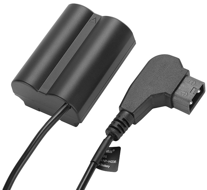 Каплер для питания цифровой камеры Fujifilm от внешнего источника питания. Позволит заменить аккумулятор NP-W235 на подключение к V-mount/Gold Mount или зарядной станции. Благодаря использованию в батарее новейшей схемы декодирования на экране будет отображаться уровень заряда. Витой вид кабеля позволяет ему растягиваться от 50 до 120 см