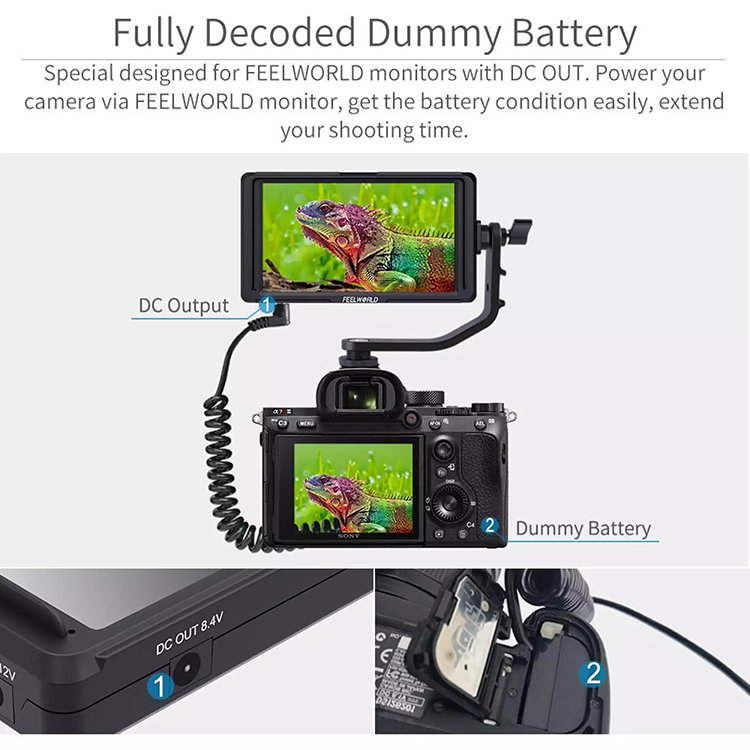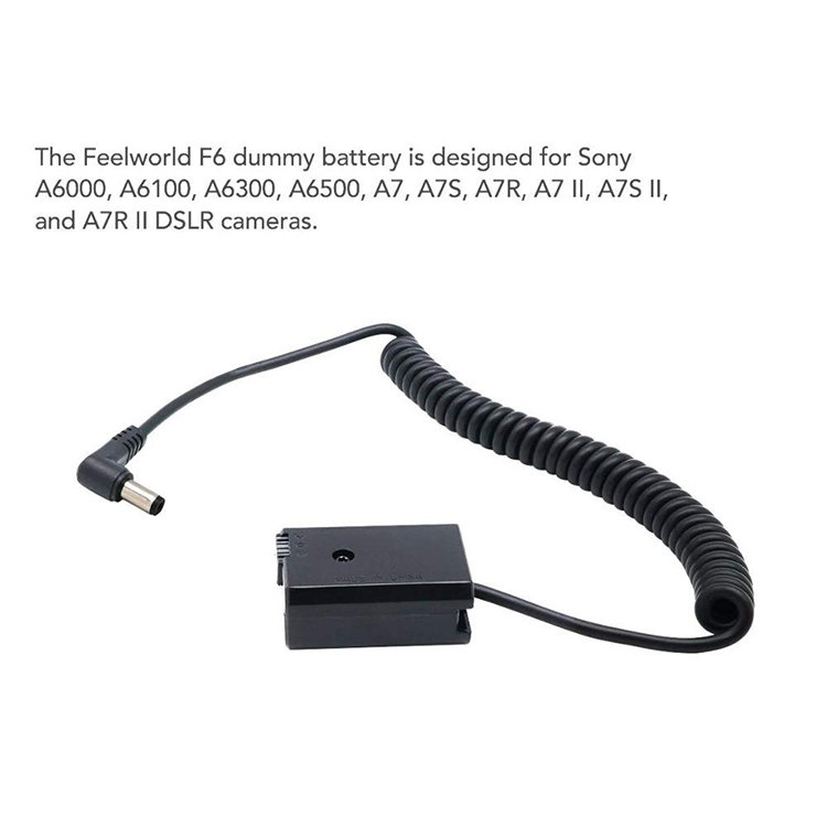 Каплер аккумулятора NP-FW50 с кабелем DC 5.5*2.1mm для подключения питания камеры от внешних источников. Кабель растягивается в длину до 120 см.