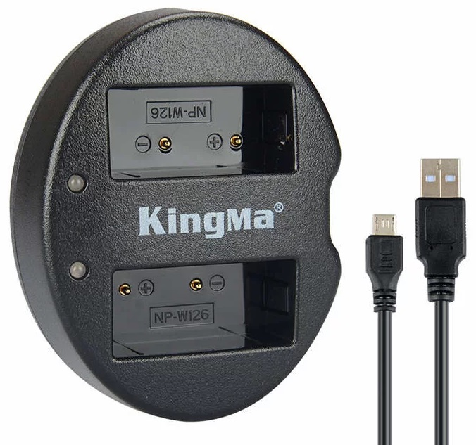Двойное зарядное устройство для аккумуляторов типа Fujifilm NP-W126/126S. Модель имеет подключение посредством micro USB кабеля, что позволяет заряжать батареи от стандартного сетевого адаптера, автозарядки или даже Power Bank. BM015 имеет компактные размеры и весит всего 83 г.