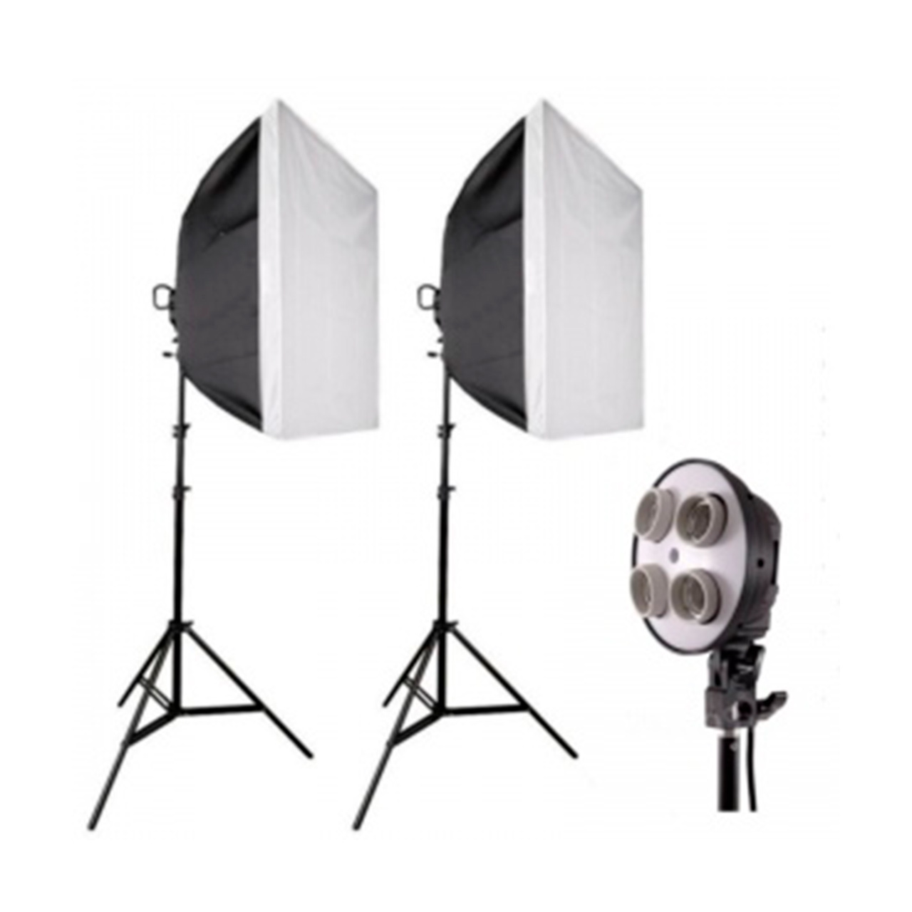 Набор света, готовый для решения любых задач, от портретной съёмки до предметной. Комплект состоит из двух источников мощность которых зависит от установленных в них ламп. Осветители со стандартным цоколем E27. То есть у Вас не возникнет проблем с заменой ламп в случае выхода их из строя. Преимуществом этого комплета является низкое энергопотребление и малое тепловыделение. В комплект входит прямоугольный софтбокс 60x80 см. Внутри находится фактурная серебристая ткань, спереди на липучки крепится белый рассеиватель. Софтбокс создает мягкое рассеянное освещение без резких теней. Осветители устанавливается на стойки, которые раскладываются до высотой 2,1м, со стандартным креплением 5/8".