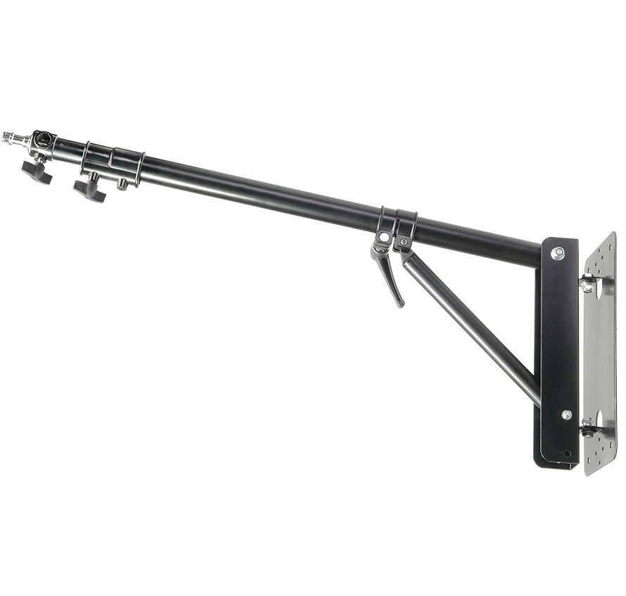Перекладина настенная WB-1200 (журавль-турник) предназначена для установки осветительного оборудования с креплениями диаметром 5/8" или резьбовыми креплениями 1/4" и 3/8", используется как одна из составляющих частей в различных конструкциях. Основным преимуществом этого крана является то, что он практически не занимает места в студии, после использования его стрелу можно повернуть вдоль стены.