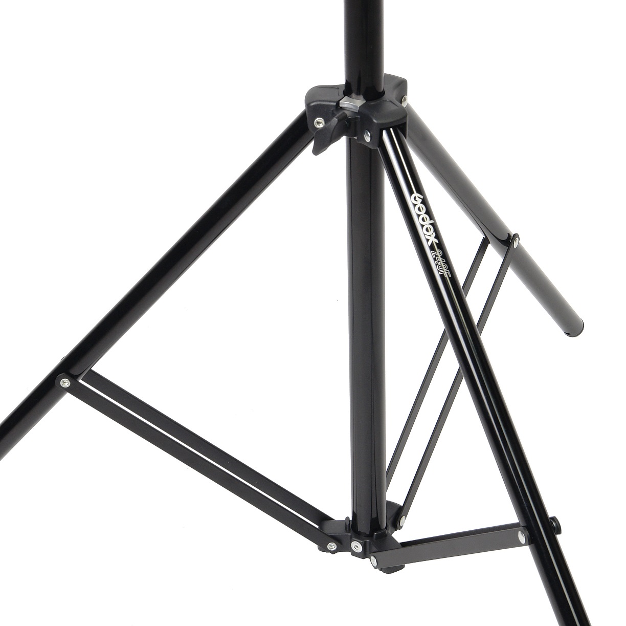 Godox 240F – переносная складная алюминиевая стойка-тренога с телескопической колонной для установки цифровых камер весом до 2 килограмм в фото- и видеостудии, а также для использования во время съемок на пленере. Длина стойки в сложенном виде - 67 см, максимальная высота 240 см, вес 1.2 кг.
