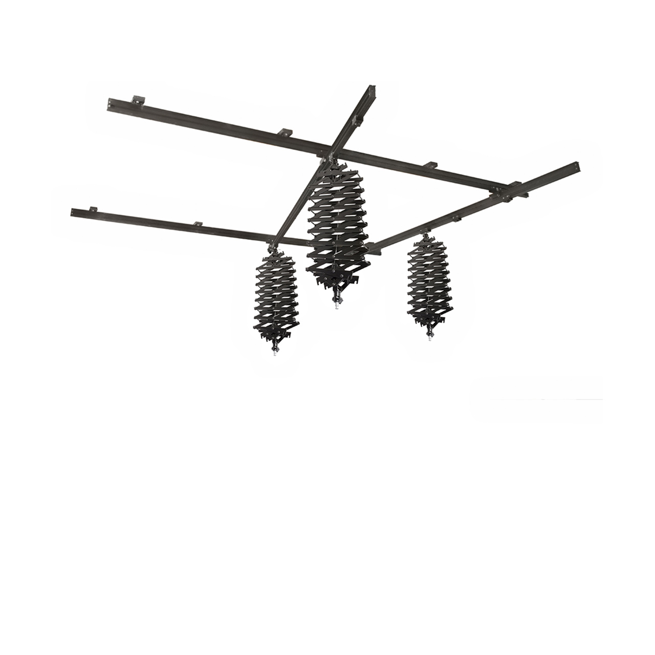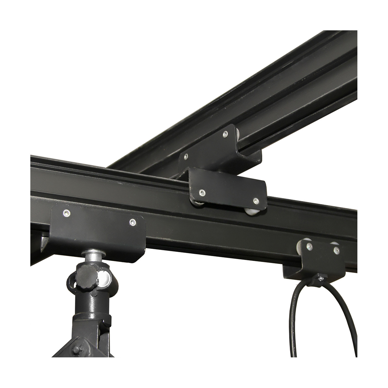 Подвесная система Falcon Eyes A3330 состоит из 3-х пантографов и 4-х рельс (крепятся к потолку). Осветительное оборудование устанавливается на пантографы, которые перемещаются по рельсам. Каждый пантограф может выдерживать нагрузку до 15 кг, что позволяет устанавливать мощные студийные вспышки с софт-боксами.