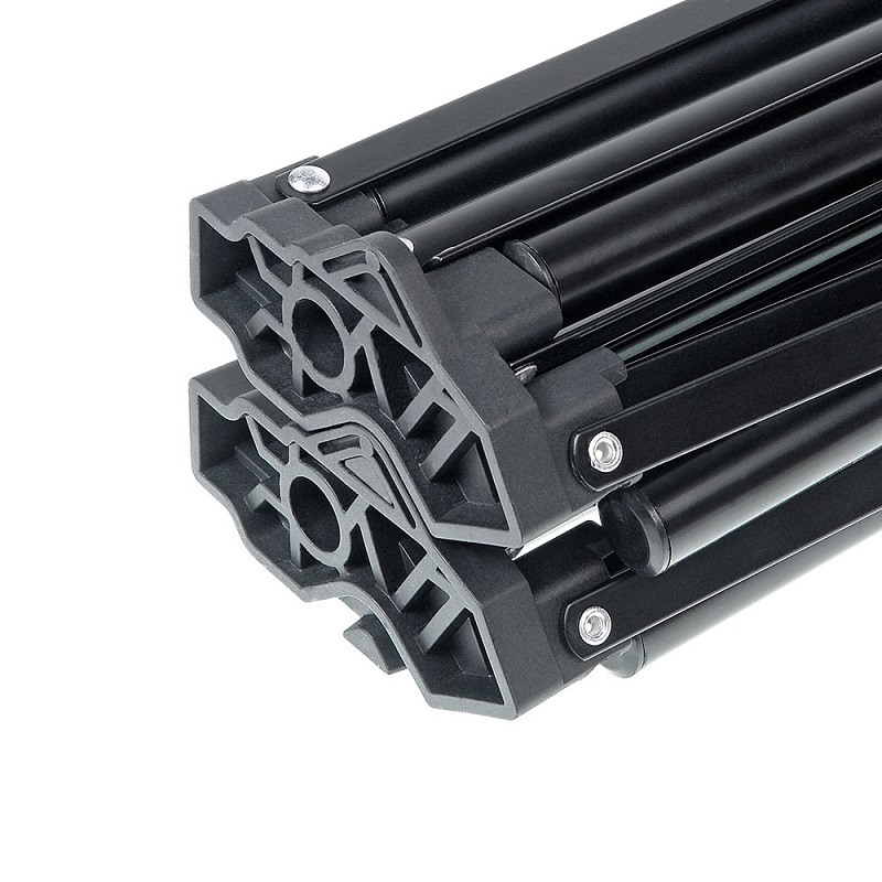 С помощью встроенного клипсового механизма эти стойки-треноги (опять же в сложенном состоянии) можно соединять друг с другом, быстро подготавливая или освобождая пространство для съемки. Диаметр ножек 19 мм.