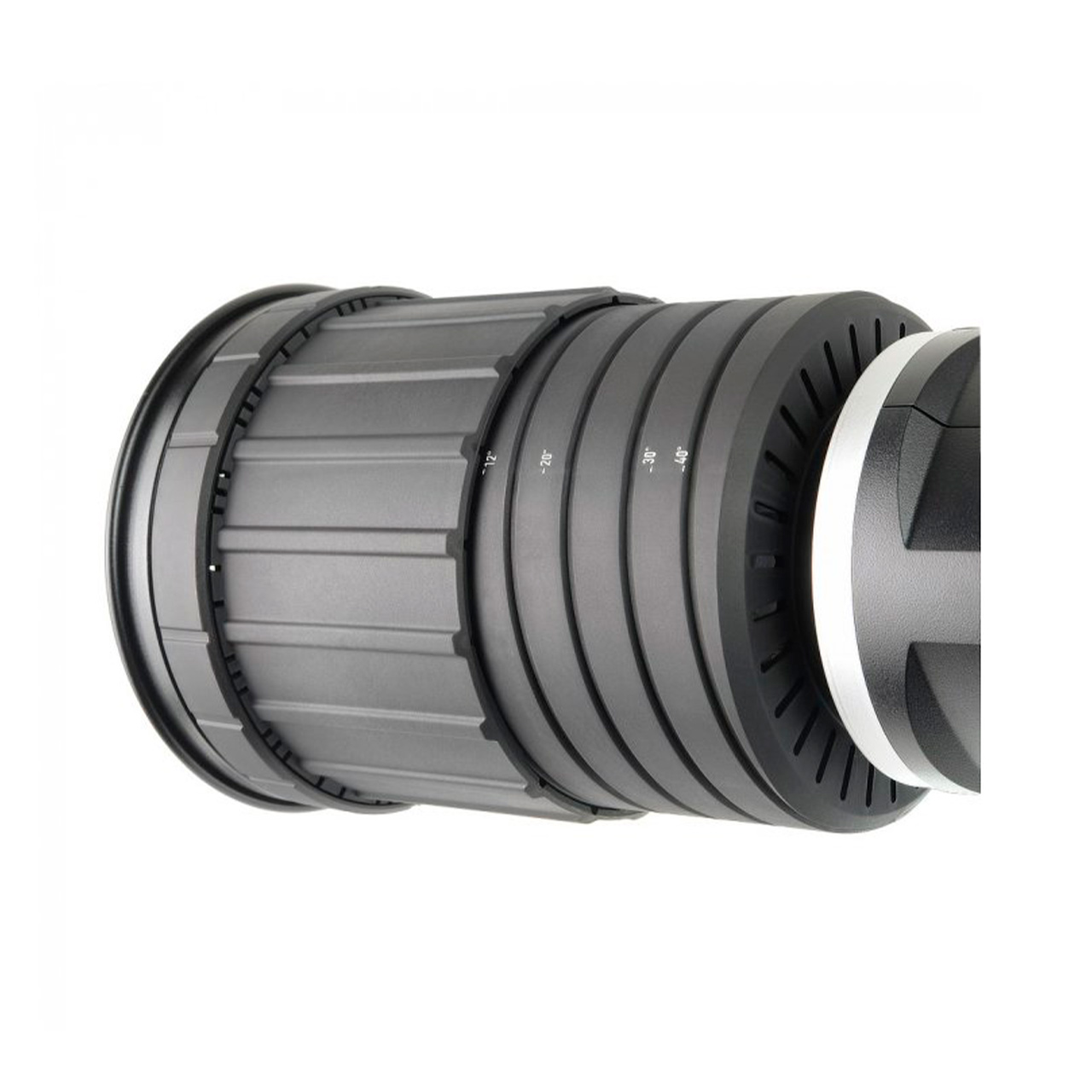 Оптическая насадка GreenBean ZoomMount 150BW позволяет создать световое пятно изменяемого диаметра с довольно чётко очерченными границами – благодаря встроенной классической линзе Френеля диаметром 150 мм. Плоско-параллельная линза изготовлена из оптического полимерного стекла и имеет толщину около 3.5 мм. На внешней стороне линзы нанесены концентрические окружности, фокусирующие лучи. На внутренней – микролинзы для выравнивания освещенности внутри светового пятна. Линза имеет высокое светопропускание и не изменяет цветовую температуру источника.