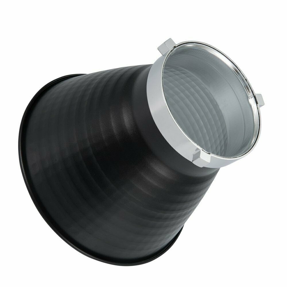 Рефлектор Godox RFT-19 диаметром 18 см, предназначен для использования со светодиодными осветителями с байонетом Bowens. Рефлектор имеет граненую и полированную внутреннюю поверхность, которая позволяет значительно увеличить яркость. Серебряное зеркальное покрытие отражает световой пучок от источника так, что образуется множество перекрестных излучений, из которых формируется равномерный световой пучок с углом рассеяния 30°.
