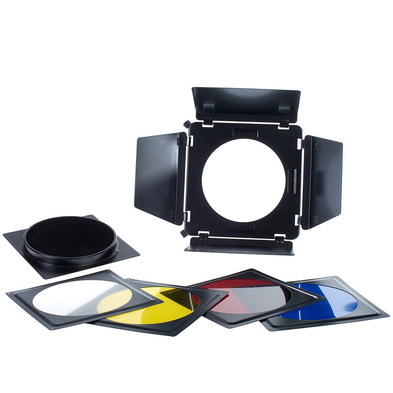 Шторки ограничивают световой поток и позволяют настроить освещение в соответствии с требованиями фотографа. Изготовлены из металла, крепление шторок производится с помощью двух винтов по углам. Посадочный диаметр 160–180 мм.