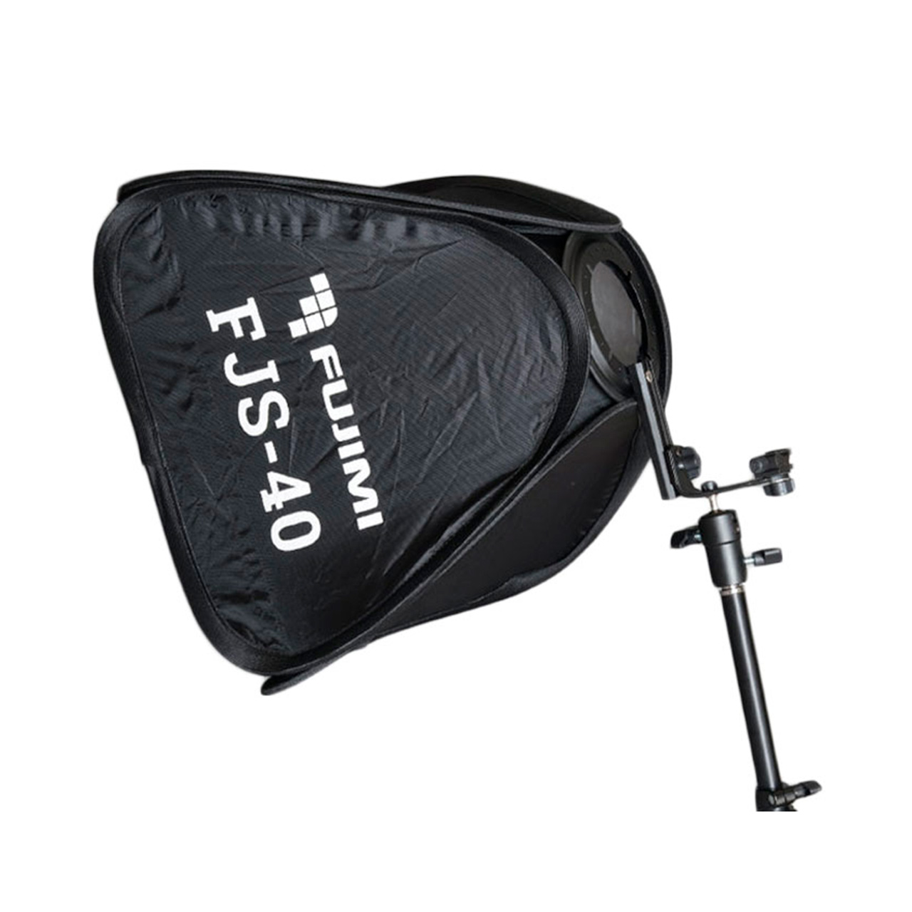 Профессиональный складной софтбокс для фотовспышек. Представленная модель используется фотографами для создания мягкого рассеянного освещения без теней и бликов. Предусмотренная производителем серебристая отражающая ткань содействует равномерной засветке рассеивателя. Портативный софт-бокс FUJIMI FJS-40 выполнен из высококачественных комплектующих материалов. Шаровая головка дает возможность наклонять и поворачивать софтбокс под требуемым углом в любом положении. Кольцо кронштейна монтируется под упругие стенки софтбокса. В комплектацию входит удобный чехол для транспортировки и хранения