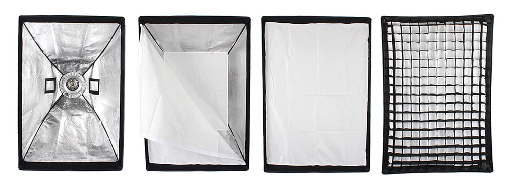 Софтбокс — модификатор света, позволяющий получить мягкий светотеневой рисунок на снимаемом объекте. Предназначен для использования на студийных вспышках в качестве заполняющего, а так же моделирующего источников света. Закрытая конструкция исключает паразитные блики и потери светового потока. Отражающая серебристая поверхность обеспечивает равномерное распределение света внутри софтбокса, белые полупрозрачные рассеиватели делают свет более мягким. Соты ограничивают световой поток — делают его более узким, оставляя только параллельные лучи, что позволяет усилить контраст в снимке. Прямоугольные софтбоксы более удобны с точки зрения занимаемого пространства, восьмиугольную насадку — октобокс — предпочитают использовать в портретной и предметной съемке, когда важна естественная (круглая) форма блика. Подбирается под снимаемый объект: небольшие октобоксы применяются крупнолицевых портретов, для получения мягкого освещения. В ростовой съемке подойдут высокие стрипбоксы (вытянутый прямоугольник) и любые другие крупногабаритные модификаторы.