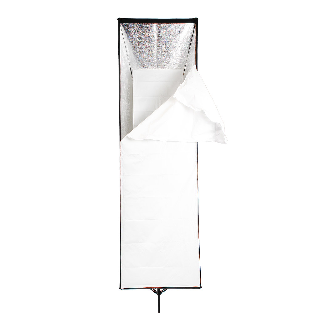 Софтбоксы с соотношением сторон более чем 1:3 называют стрипбоксами, их используют для ростовой съемки, создания градиентной подсветки на фоне, в предметной съемке для получения яркого длинного блика, и там, где нужно получить направленный узкий свет, например для подсветки волос и плеч сверху.