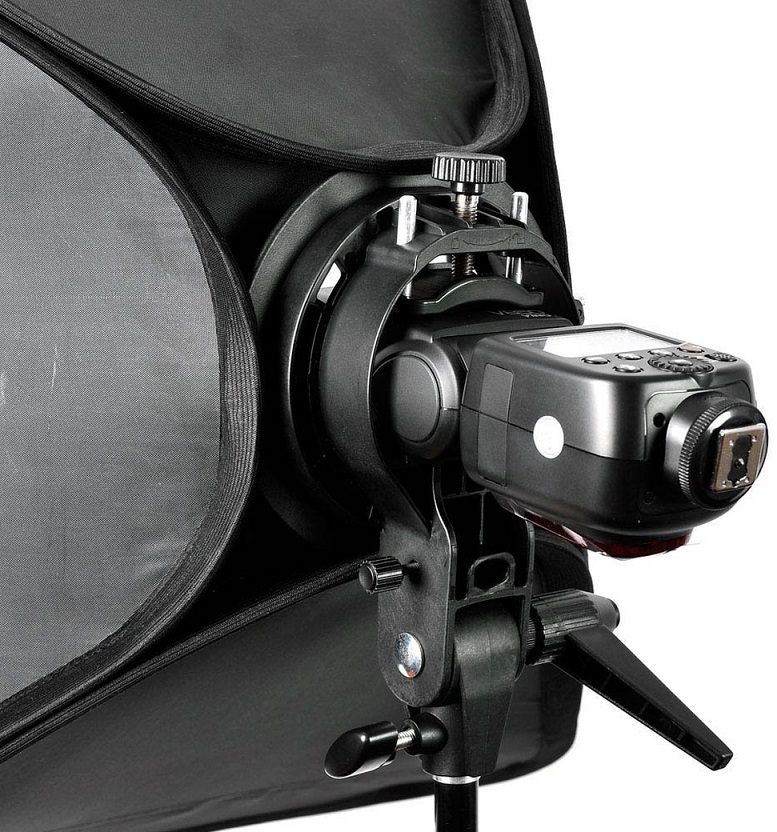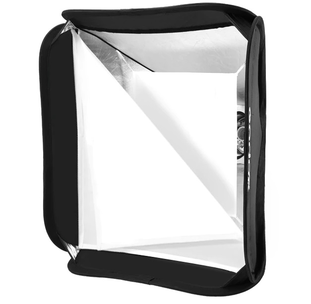 Переносной софтбокс с креплением для накамерных вспышек. Система очень просто собирается и складывается при помощи классического пружинного механизма. В собранном состоянии система занимает очень мало места и помещается в обычный фоторюкзак или сумку. Для установки софтбокса используется байонетное крепление Bowens, что позволяет использовать широкий спектр аксессуаров, таких как портретные тарелки, стрипбоксы, октабоксы и многие другие. Софтбокс, который входит в комплект, обладает самыми оптимальными габаритами для работы с компактными вспышками. На креплении есть дополнительное отверстие для фотозонта. Крепление вспышки имеет ряд регулировок, что позволяет точно настроить держатель под габариты используемой модели. Держатель для накамерной вспышки оснащен надежной и простой в использовании системой фиксации. Крепление поворотного типа не только надежно фиксирует систему на студийной стойке, но и обеспечивает возможность наклона и поворота.