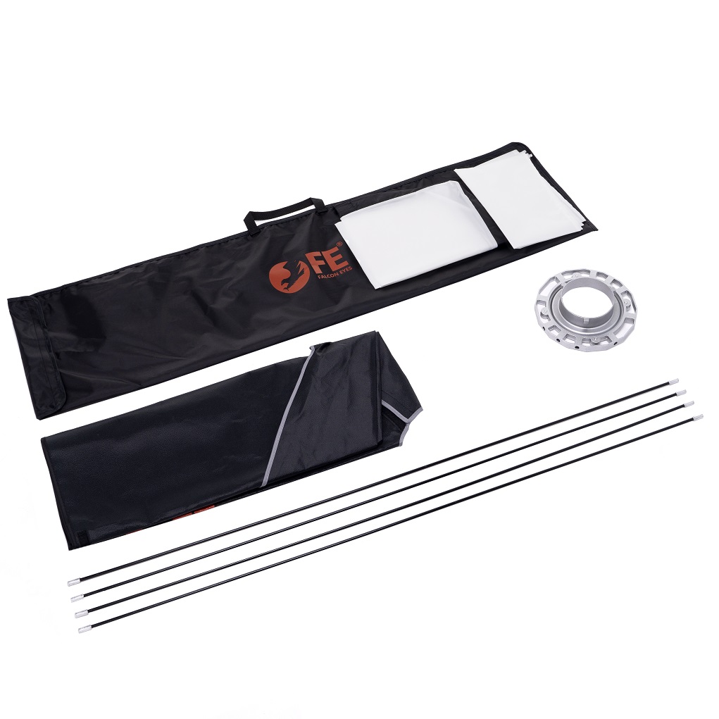 Стофтбокс FEA-SBII 50200 BW – новый световой прямоугольный модификатор Falcon Eyes для управления световым потоком от импульсных вспышек и светодиодных LED осветителей с байонетом Bowens. Софтбокс-стрипбокс помогает создать мягкое рассеянное освещение, предотвращая появление глубоких теней или бликов. Закрытая конструкция позволяет получить равномерный направленный поток света и избежать нежелательных потерь светового потока. Софтбоксы дают «живой» блик в глазах и на поверхностях объекта, имитирующий естественное освещение. Благодаря универсальности и компактности, софтбоксы серии Falcon Eyes FEA-SBII BW могут использоваться в студии и на улице. Стрипбоксы подойдут для использования в портретной и предметной фотографии, в том числе ростовых портретов и крупных предметов. Размер софтбокса 50х200см. Световой модификатор состоит из тента-отражателя, внешнего и внутреннего тканевых рассеивателей (диффузоров), байонетного кольца (крепления) и четырех стальных спиц. В комплект также входит чехол для хранения и транспортировки софтбокса.