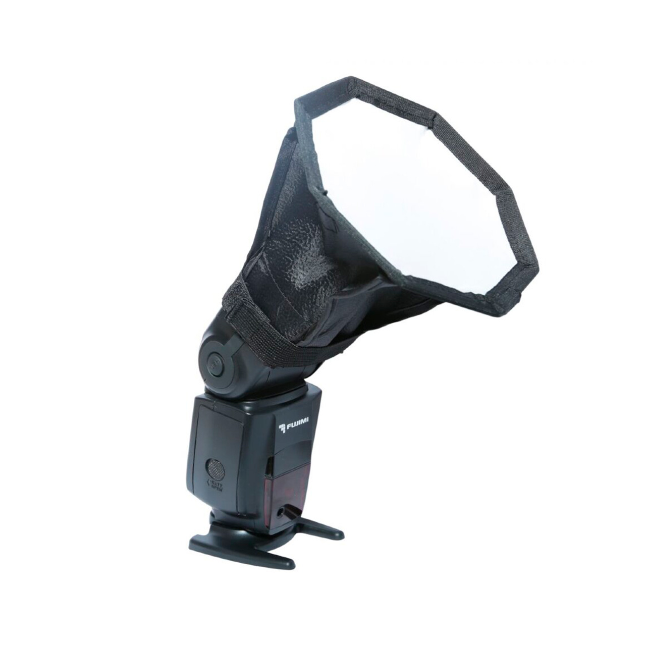 Октабокс для вспышки FUJIMI FJO-15 (15см) – это удобная насадка со светоотражающей внутренней поверхностью, которая позволяет получать мягкий направленный свет, устраняя грубые тени или блики. В отличие от больших и громоздких софтбоксов для студийной съемки, данный октобокс имеет компактную складную конструкцию и при необходимости устанавливается на месте съемки непосредственно на накамерную вспышку.