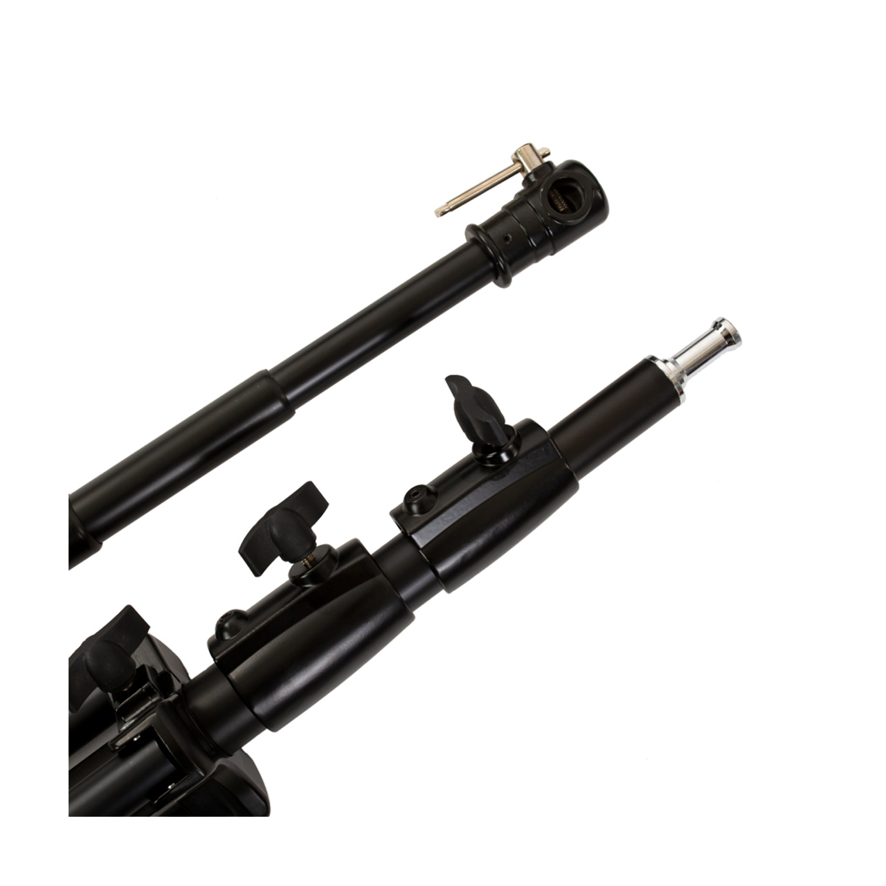 Система установки фона Godox BS04 подходит для крепления тканевых фонов на высоту до 200 см. Комплект состоит из двух регулируемых по высоте стоек и составной горизонтальной перекладины. Универсальная система установки фона применяется при различных видах съемки: начиная с предметной съемки от небольших объектов, заканчивая фэшн-съемкой ростовых портретов или видеосъемкой с использованием технологий «хромакей». Комплект весом 4.1 кг упаковывается в компактный чехол с наплечным ремнем и ручками для переноски. Комплект прост в установке и не требует дополнительного крепежа. Стойки устанавливаются на горизонтальную поверхность, перекладина закрепляется и регулируется высота – эти действия не займут больше 5 минут. Благодаря такой мобильности комплект можно взять с собой на выездную съемку, временно или постоянно установить в студии. Конструкция – прочная и долговечная, рассчитана на многократную сборку и разборку, а также длительное использование.