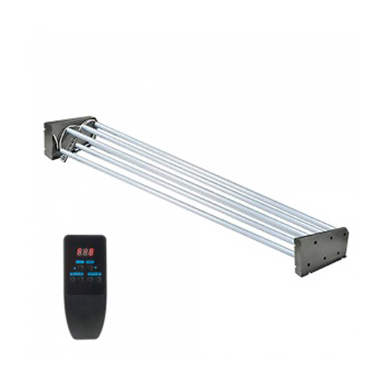 Подъемник фона моторизированный предназначен для дистанционного поднятия/опускания фотофона с помощью проводного или беспроводного пульта дистанционного управления (входят в комплект). Смена фона теперь занимает считанные секунды. Подъёмник состоит из приводной части с электромоторами и проводным пультом управления, ответной части подъёмника и шести валов длиной 3.22 м. Корпуса приводной и ответной частей сделаны из стали. На обоих корпусах есть крепёжные отверстия. Установить подъёмник возможно как на стену, так и на потолок. Посадочные места для валов оснащены подшипниками и винтовыми фиксаторами. Фоны шириной до 3 м наматываются на валы подъемника. Питание подъемника осуществляется от сети переменного тока. Длина кабеля питания около 270 см. На приводной части находится блок управления со светодиодной индикацией работы подъемника. Проводной пульт оснащен 6 кнопками управления каждым валом. Дополнительно на нем есть выключатель питания всего подъемника в целом. Длина кабеля проводного пульта — около 210 см. Беспроводной радио-пульт снабжен антенной для увеличения дальности, кнопками для поднятия/опускания фонов. Пульт работает от двух 12 В батареек типа 23А. Дальность эффективной работы до 50 м. В комплекте подъемника предусмотрено 6 валов. Вал представляет собой алюминиевую трубу диаметром 47 мм. Один конец вала (без отверстия для фиксатора) свободно заводится в отверстие ответной части подъемника. Второй конец (с отверстием для фиксатора) заводится в муфту приводной части и фиксируется болтом с гайкой от проворачивания. Заменить или установить фон можно перемотав фон со втулки на вал, закрепив край фона на валу скотчем. Либо надеть фон вместе со его втулкой на вал, скомпенсировав разницу диаметров вала и втулки подручными эластичными материалами (резина, плотный поролон, пенопласт и т д.). Благодаря таким вставкам между валом и рулоном последний не будет проворачиваться на валу. Так как внутренние диаметры рулонов не стандартизированы, иного способа, кроме как использовать противоскользящие, компенсирующие разницу диаметров вала и внутреннего диаметра, самостоятельно изготовленные "распорки" нет.