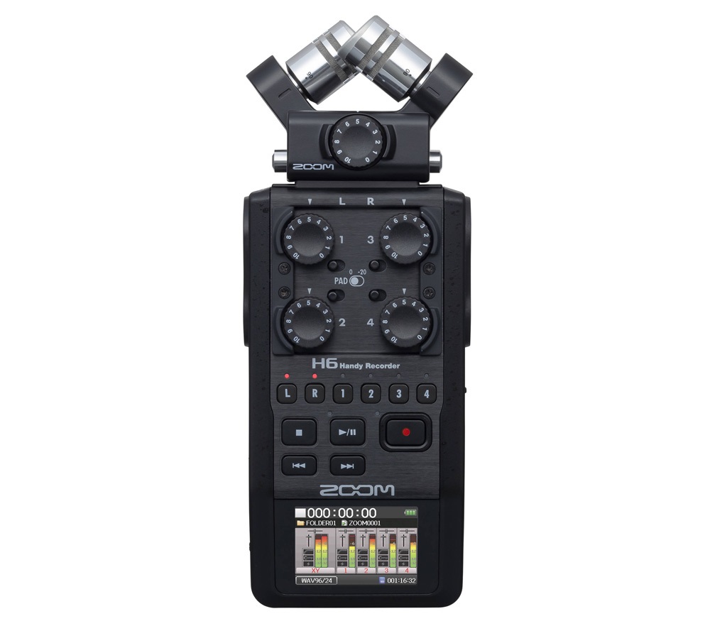Zoom H6 оборудован сменными микрофонными капсюлями разного типа и назначения. В комплект входят XYH-6 – разнонаправленный микрофонный капсюль типа X/Y, а дополнительно можно приобрести SGH-6 — капсюль типа «пушка», MSH-6 — капсюль с поддержкой Mid-Side стерео, а также EXH-6 – модуль- на 2 дополнительных комбинированных XLR/TRS входа. Всё это делает Zoom H6 настоящим хамелеоном мира аудио и устройством, обладающим самыми лучшими звуковыми характеристиками в сегменте.