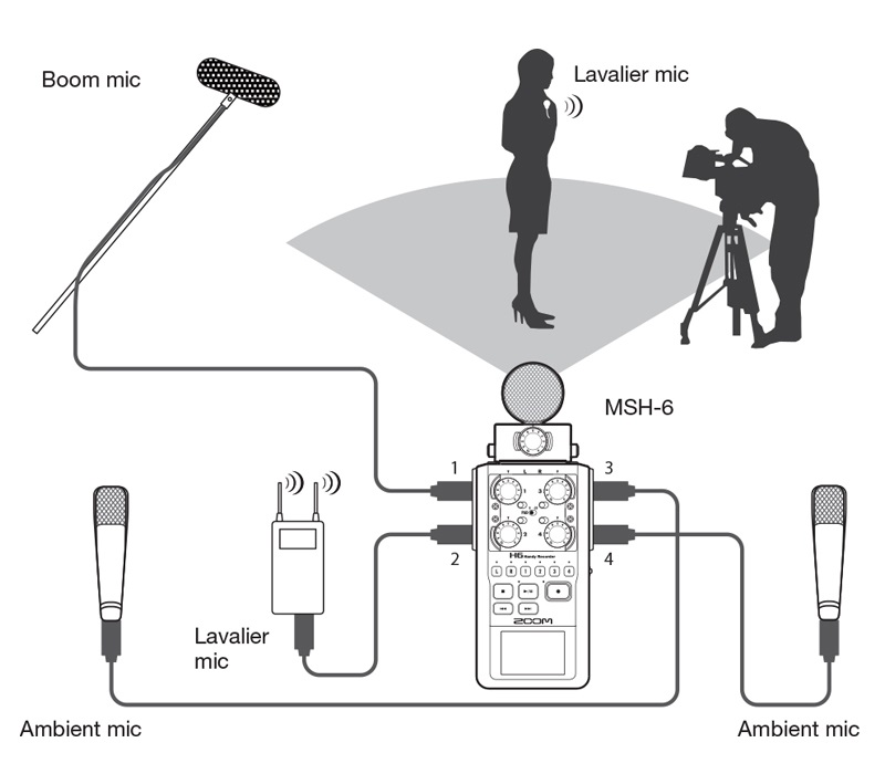 Вне зависимости от того, как вы крепите H6 к вашей камере, этот рекордер станет неотъемлемой частью для любой видеографии в полевых условиях. H6 оснащен функцией MS-декодирования, в его комплект входит микрофонный капсюль MSH-6, а также он способен вести запись сразу на шесть дорожек одновременно. Все это дает вам весьма широкие возможности при пост-продакшне.